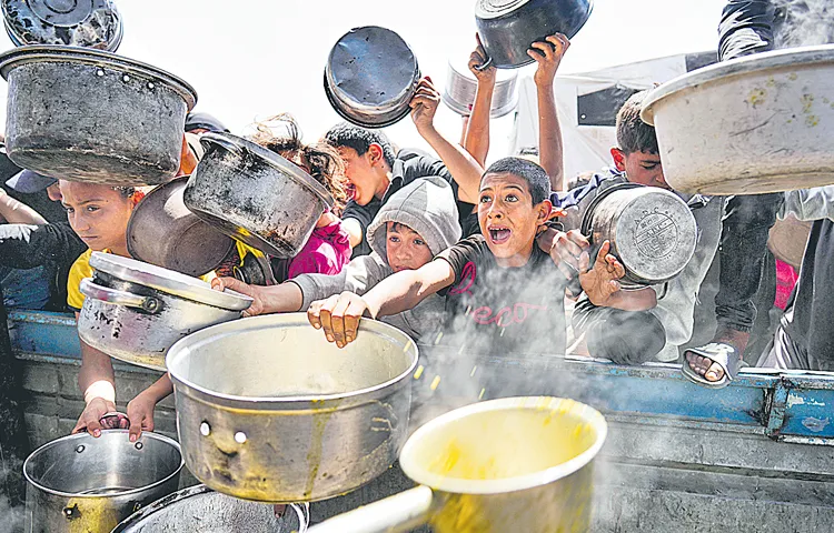 ఇస్రాయీల్ జరుపుతున్న మారణహోమంతో గాజాలో ఎక్కడ చూసినా ఆకలి కేకలు వినపడుతున్నాయి. వందల మంది పసి పిల్లలు ఆకలితో మృత్యువాతపడుతున్నారు. గాజాలో 9లక్షల మంది పిల్లలు ఆకలితో అలమటిస్తున్నారని బీబీసి నివేదిక చెప్పింది. వారిలో 70వేల మంది పోషకాహార లోపంతో ఉన్నారని నివేదికలో పేర్కొంది. ఈ పరిస్థితులు మరింత ప్రమాదకరంగా మారే పరిస్థితి ఉందని అంతర్జాతీయ మానవ సేవా సంస్థలు హెచ్చరిస్తున్నాయి. శిశువులకు పట్టేందుకు పాలు లేక బాలింతల బాధలు వర్ణనాతీతం. మానవతా సాయాన్ని కూడా ఇస్రాయీల్ అడ్డుకుంటోందని పలు స్వచ్ఛంద సంస్థలు తీవ్రంగా మండిపడుతున్నాయి. ”నాలుగు రోజులుగా తినడానికి ఏమీ లేక నా ఇద్దరు పిల్లలు ఏడుస్తున్నారు” అని గాజాకు చెందిన ఓ తండ్రి ఆవేదన.