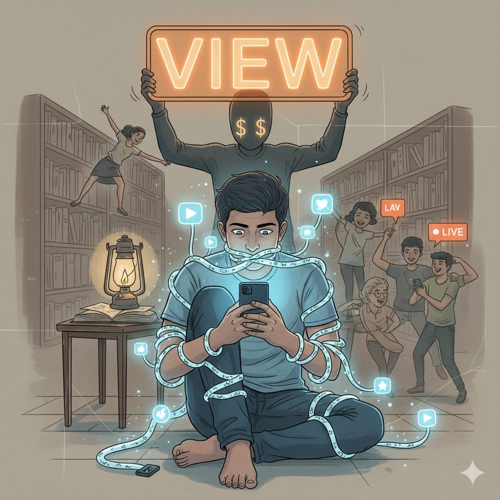 ముజాహిద్ ముహమ్మద్ ఒకప్పుడు ప్రతిభ అనేది కష్టానికి ప్రతిరూపంగా ఉండేది. కానీ నేడు, అది కేవలం కొన్ని సెకన్ల ‘రీల్’ (Reel) చుట్టూ తిరుగుతోంది. అదృశ్యంగా అల్లుకుపోయిన ఇంటర్నెట్ తీగలు యువతను ఎంతలా బంధించాయంటే, తమ కళ్లముందున్న జీవితాన్ని కంటే కెమెరా లెన్స్ వెనుక ఉన్న ప్రపంచాన్నే వారు సర్వస్వంగా భావిస్తున్నారు. ఈ క్రమంలో ‘వ్యూస్’ కోసం వారు పడుతున్న ఆరాటం చివరకు సామాజిక విలువలను, కనీస విచక్షణను కూడా బలి తీసుకుంటోంది.రీల్స్ పిచ్చి – కోల్పోతున్న […]